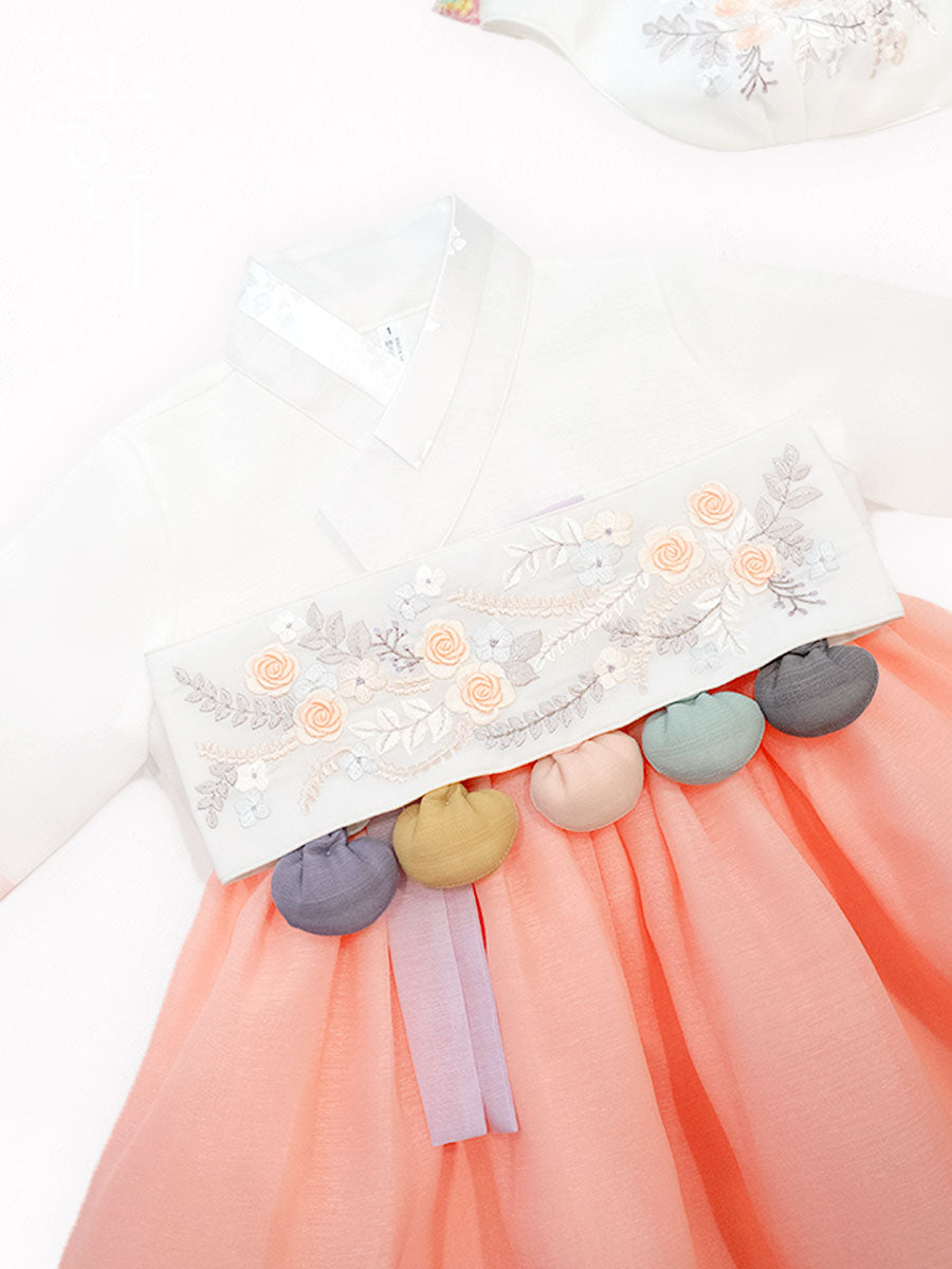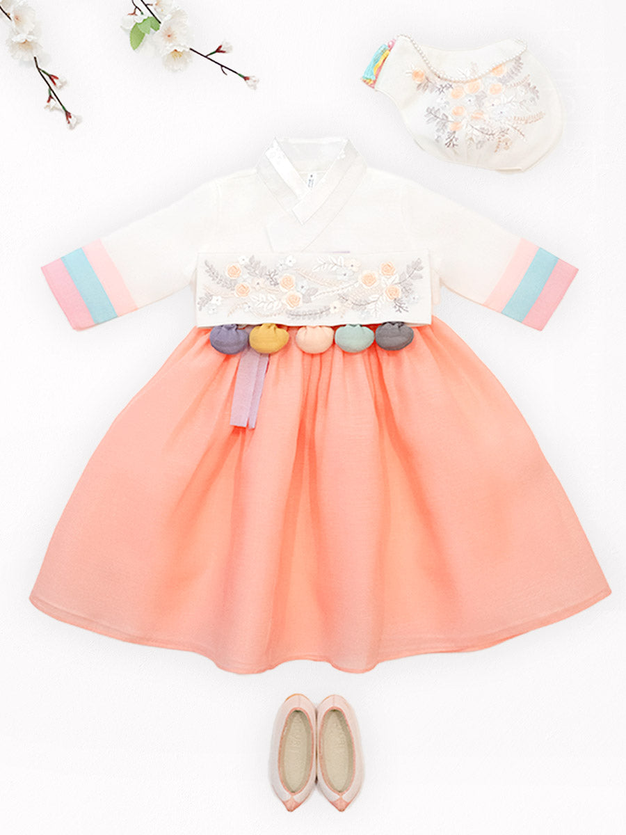 Celebrate a special Korean occasion with a Lovely Apricot Baby Girl Hanbok