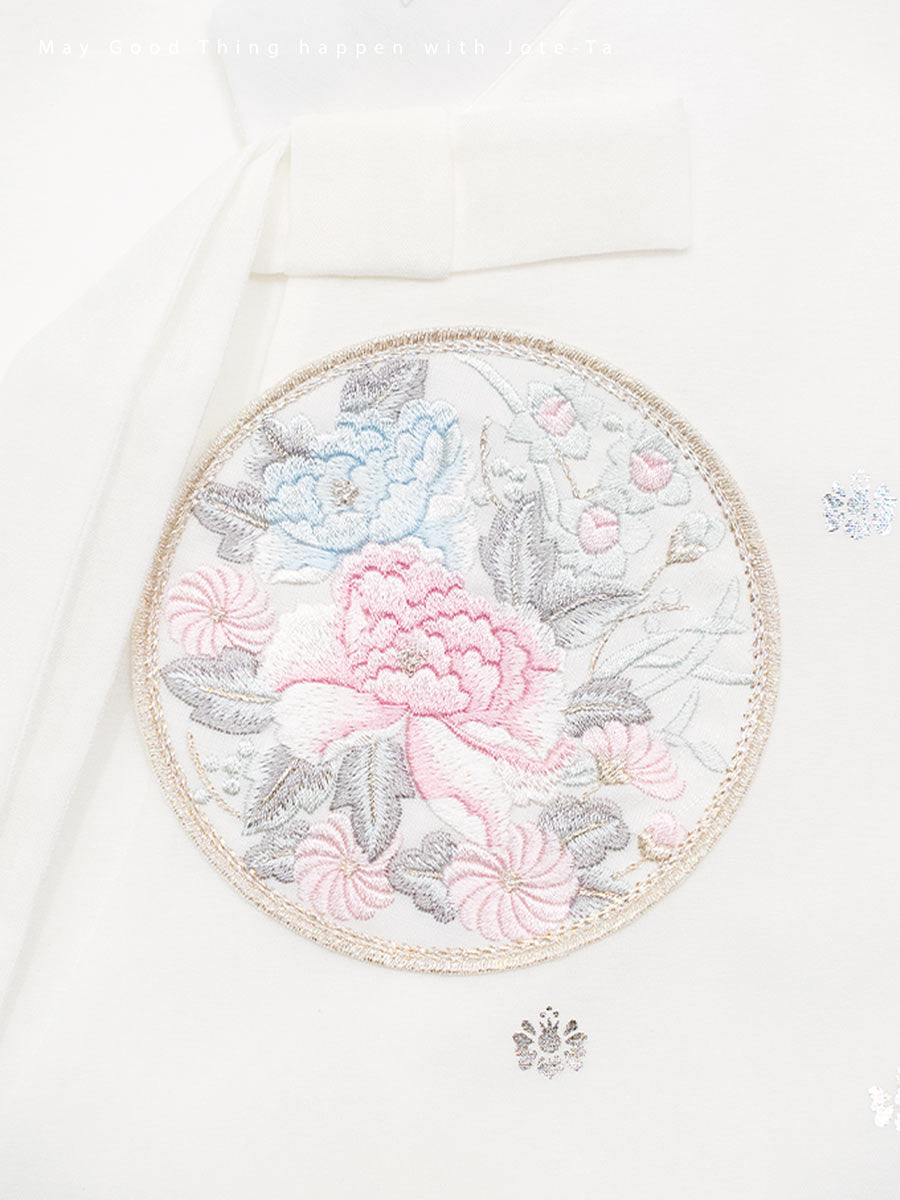 1. Ivory Top Designed with Silver Foiled Floral Pattern (Long Jeogori)