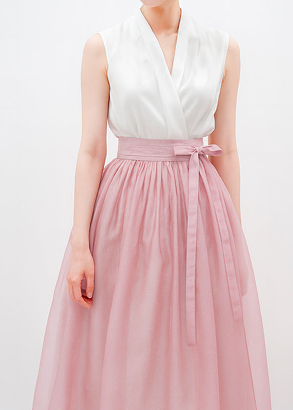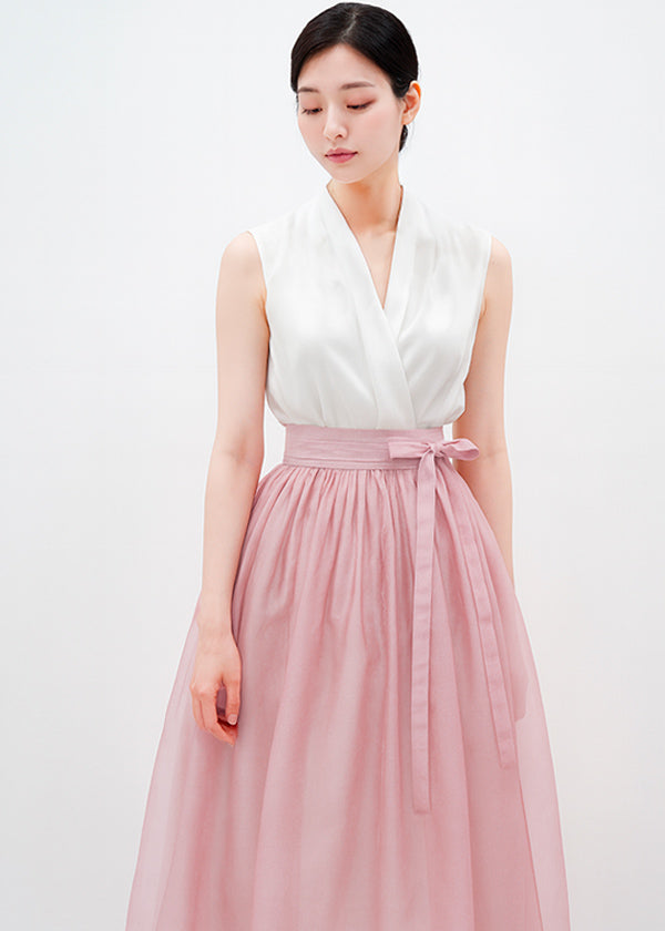 About Shadow Bloom Modern Hanbok Skirt in Soft Blush